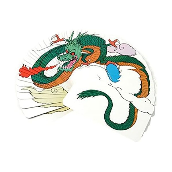 - But the best part is on the face of the deck. Fanned in one direction, the deck appears ordinary. Fanned in the other direction, however, the cards form a full-color picture of a menacing green dragon!