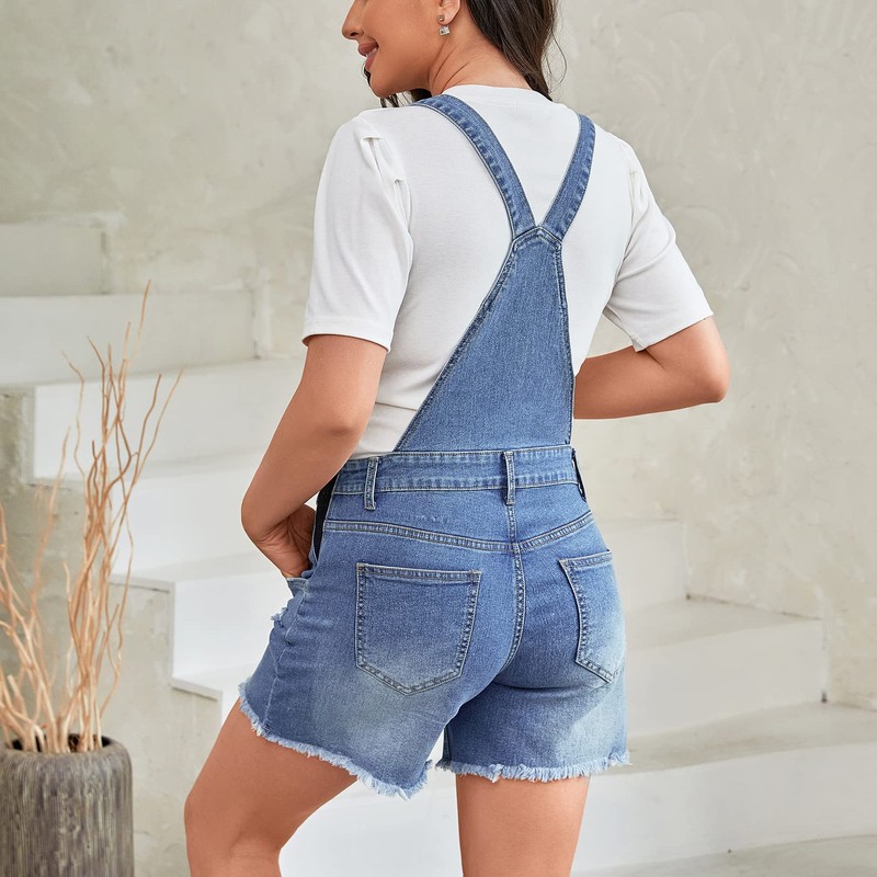 MOMOOD - Overol de maternidad con dobladillo rasgado y tirantes ajustables, para maternidad, Azul mezclilla, L