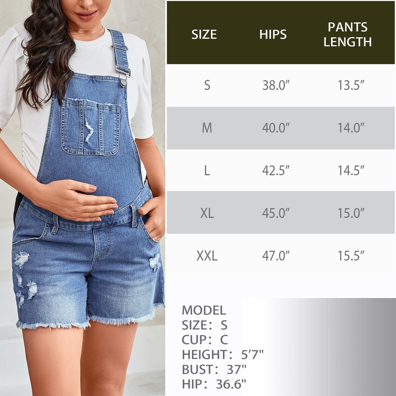 - Mezclilla elástica que proporciona un aspecto elegante y una sensación cómoda mientras lo usas. Hebillas ajustables y paneles laterales hacen que este general sea adecuado para cada etapa del embarazo y posparto.