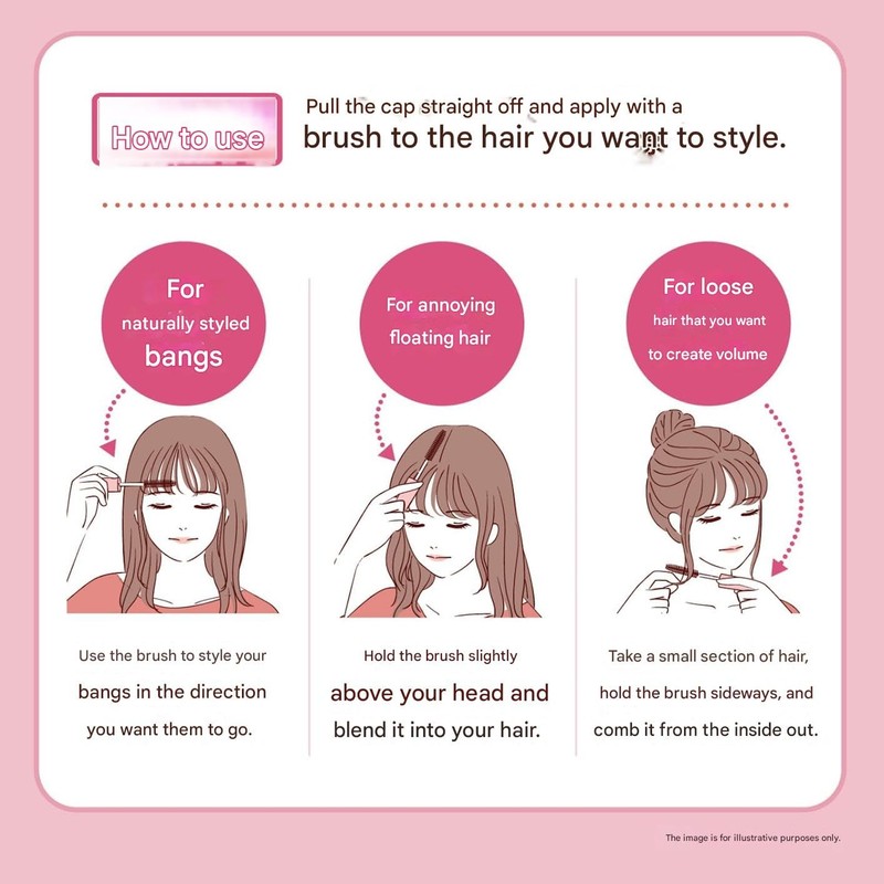 - Just apply it quickly to bangs or stray hairs. A spot-use styling product that tames hair naturally without looking shiny.