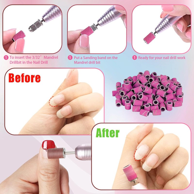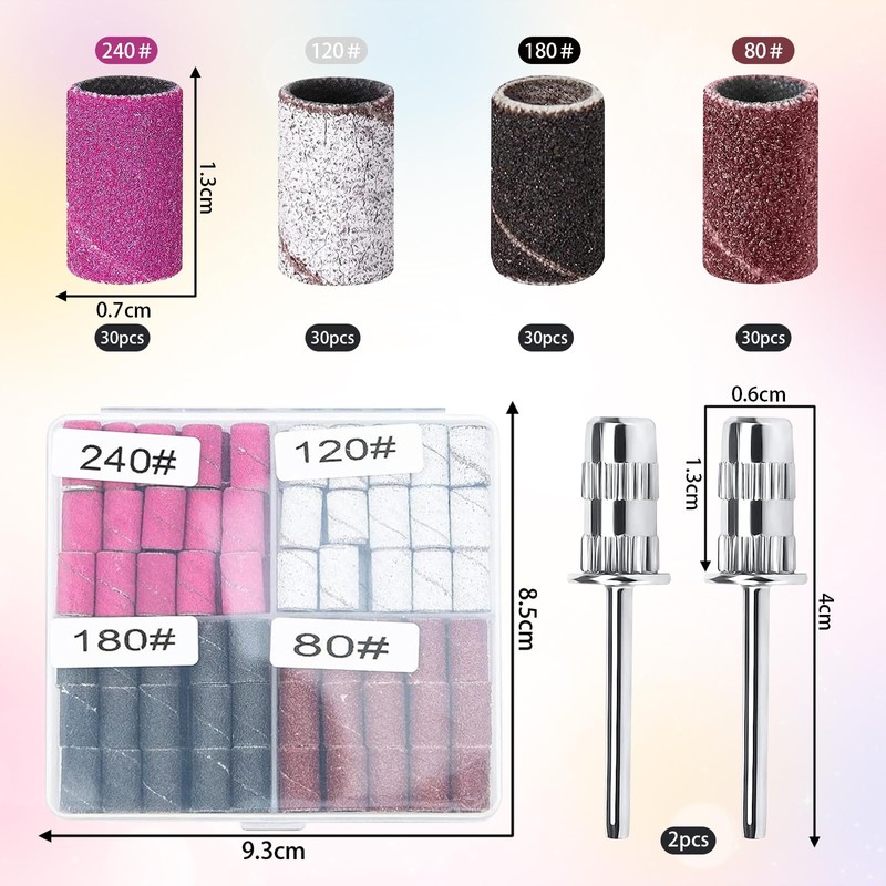 This assortment contains four types of large sand heads, each consisting of 30 pieces, giving you a variety of different manicure needs. Each sanding attachment is precisely designed to ensure efficient sanding while maintaining the health of your nails. Thanks to their high-quality materials, these sleeves are durable and wear-resistant, ensuring flawless results on everyone. The two ball bearings included in the package make it easy to change bits, allowing you to switch from one style to another with ease.