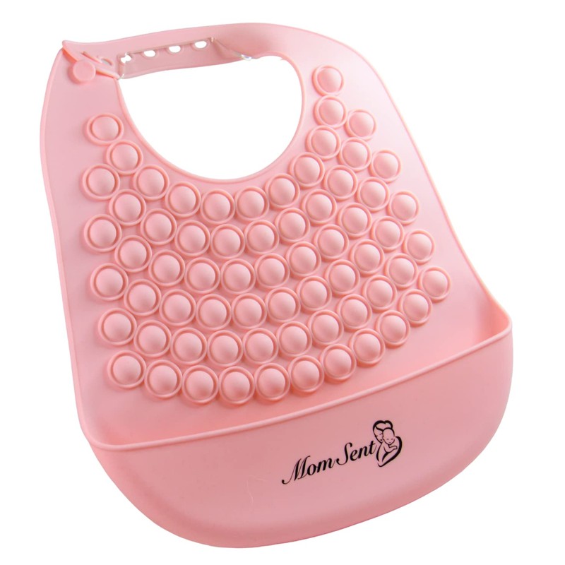 Momsent Silicone Bib for babies and toddlers. Sensory Fidget Popper Adjustable, waterproof, BPA Free. (Pink, blue) (Pink)