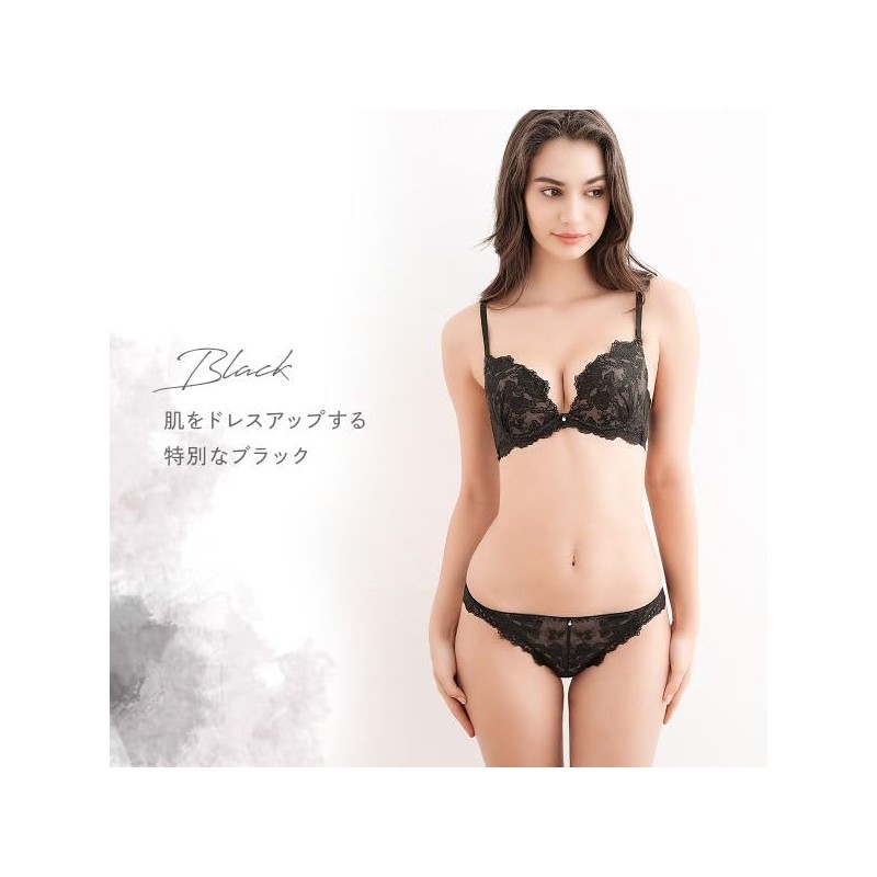 Curved cups round along the bulge of the bust, low front wire for a bold look. The back is a single piece of stretch lace with stretch. The lace overlaps your skin and creates an attractive back style.