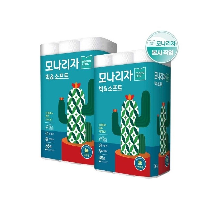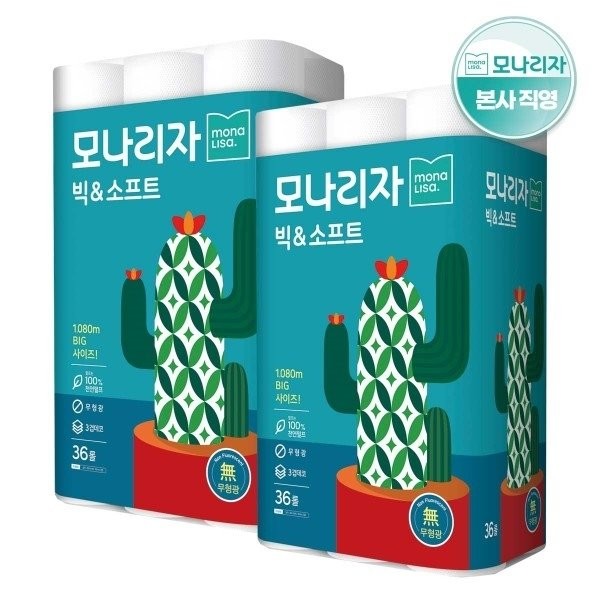 Mona Lisa Big & Soft Deco 30m*36 roll x2 packs (natural pulp), none / 모나리자 빅앤소프트데코 30m*36롤 x2팩 (천연펄프), 없음