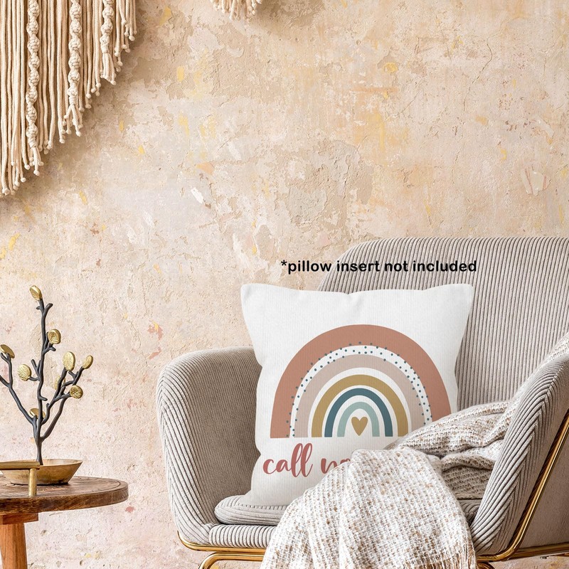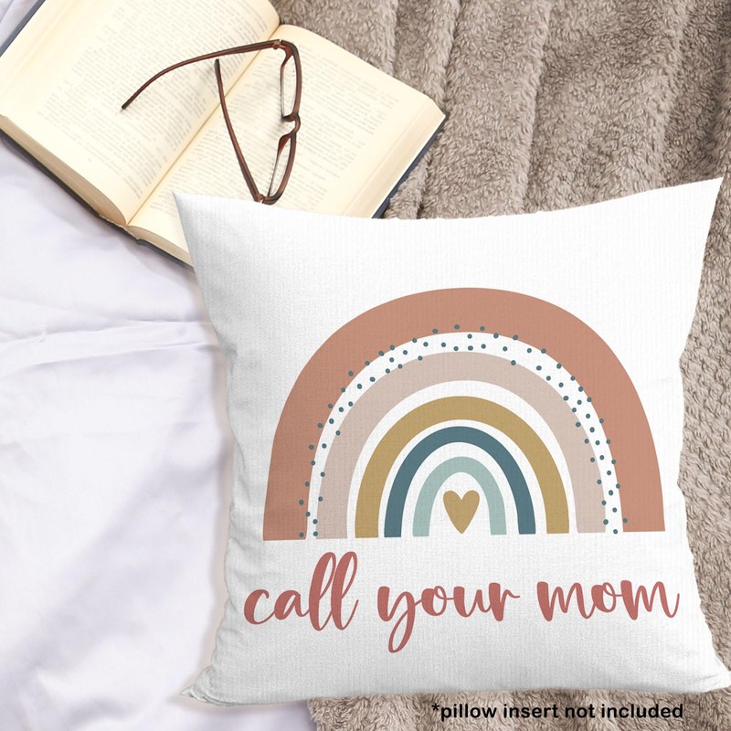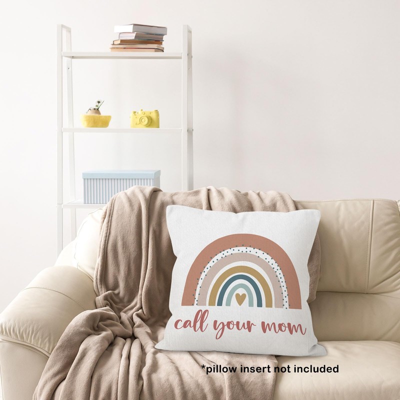 MONALET Call Your Mom Dorm Throw Pillow Covers 18x18, Boho Rainbow Decorative Square Pillow Cases for Couch Bed Sofa, Cute Decor Pillowcases for College Dorm Classroom Bedroom, Back to School Gifts