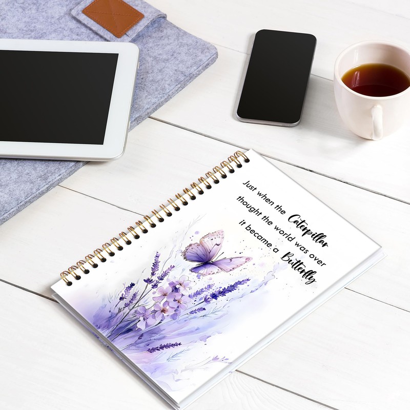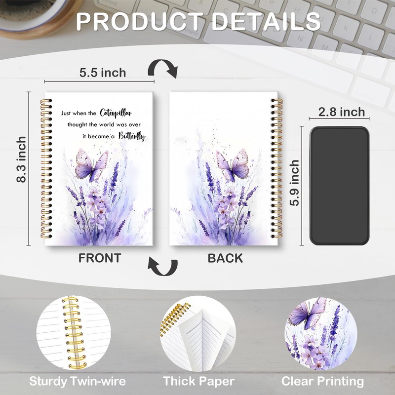 MONALET Purple Butterfly Inspirational A5 Spiral Notebook Gifts, Motivational Hardcover Daily Journal Notebooks Lined for School Office Work Note Taking, Positive Affirmations Notebook 5.5x8.3