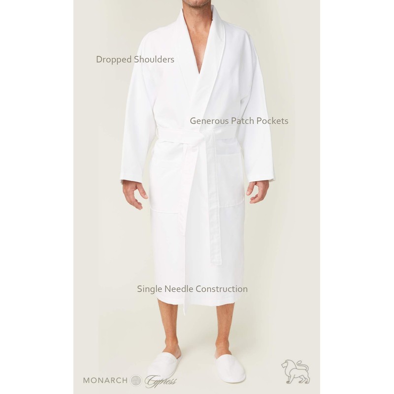 MONARCH Chamois Microfiber Shawl Hotel Robe - Lightweight Absorbent Soft Spa Bathrobe in Cypress (Small, White)