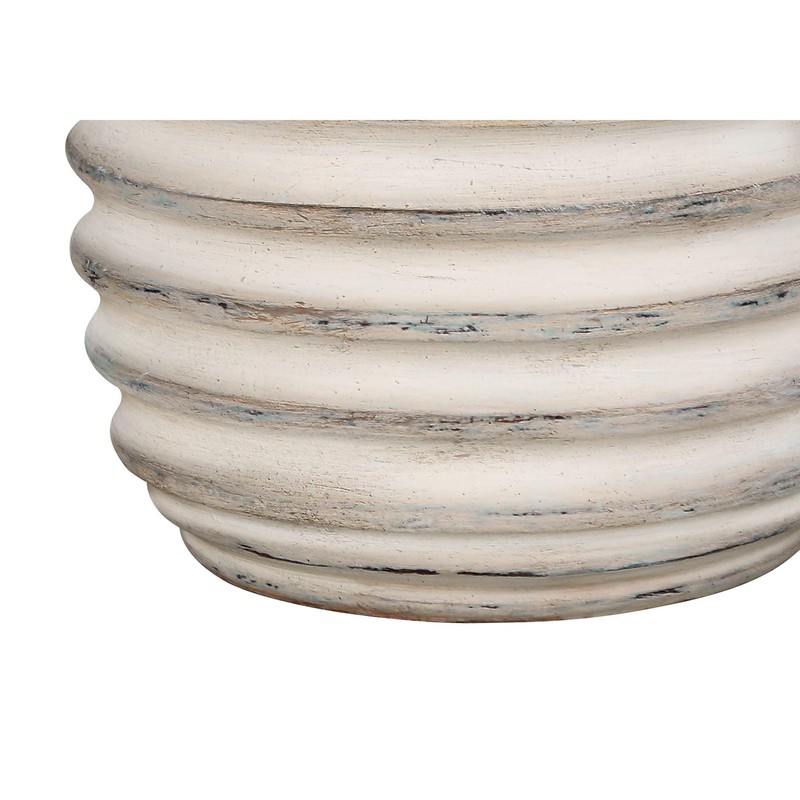 • Brighten up any office, living room, or bedroom with this stylish, textured 28 h table lamp with a distressed cream resin base in a ridged, elongated beehive design, and chic ivory linen fabric drum shade topped with a grey wood finial.