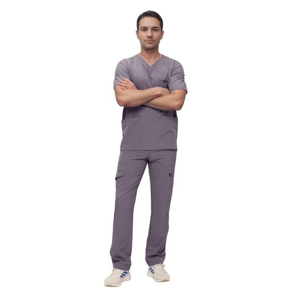 - A POCKET FOR EVERY NEED- For the guy who has a lot of stuff- this scrub set is for you. The v-neck top has three pockets- two oversized lower pockets and a roomy chest pocket. The scrub bottoms feature six large pockets- two back packets, two hip pockets, and two cargo pockets to secure all your belongings