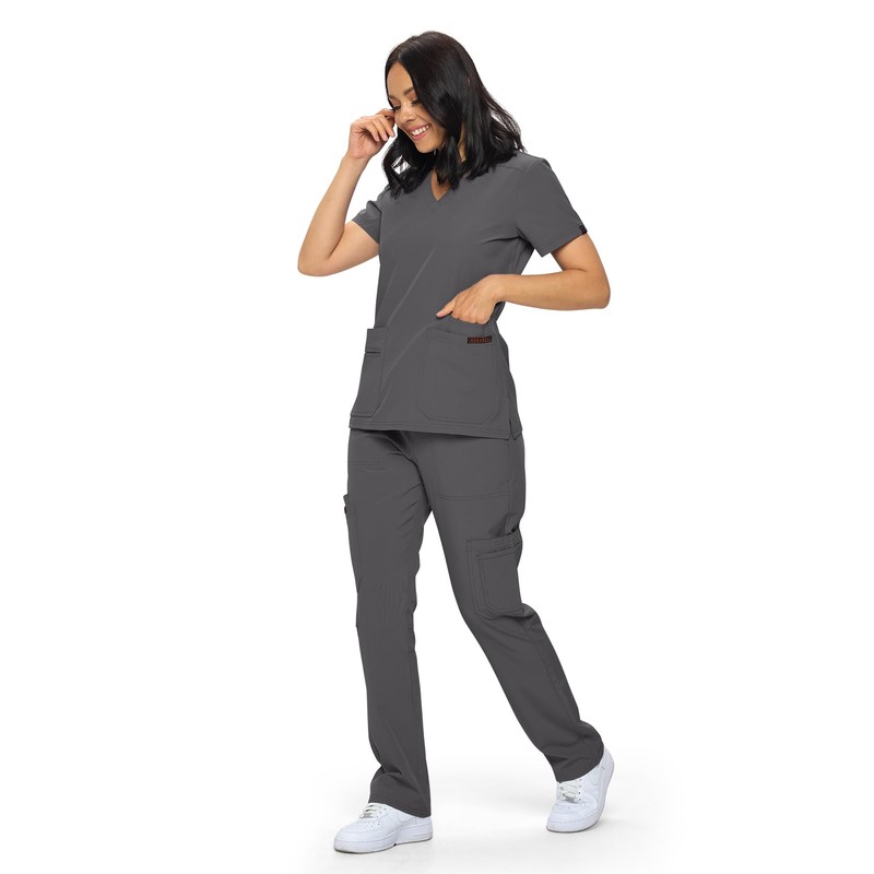 Monarch Uniforms Scrub Sets in Regular and Petite Stretchy Scrubs for Women Set of Scrub Top and Scrub pants-(CHARCOAL)-XL