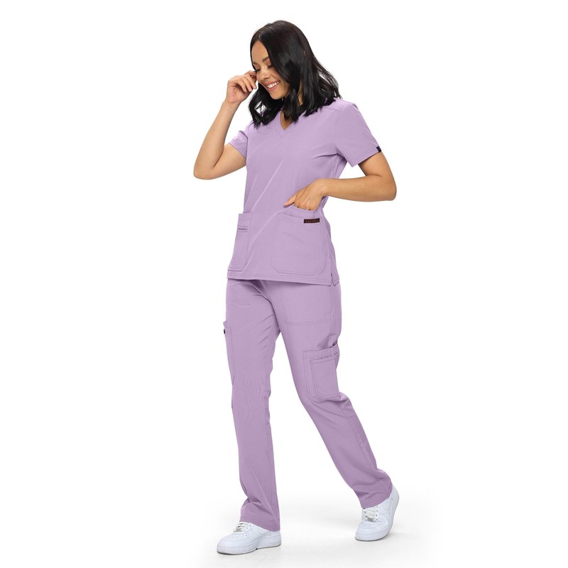 Monarch Uniforms Scrub Sets in Regular and Petite Stretchy Scrubs for Women Set of Scrub Top and Scrub pants-(LAVENDER)-XS