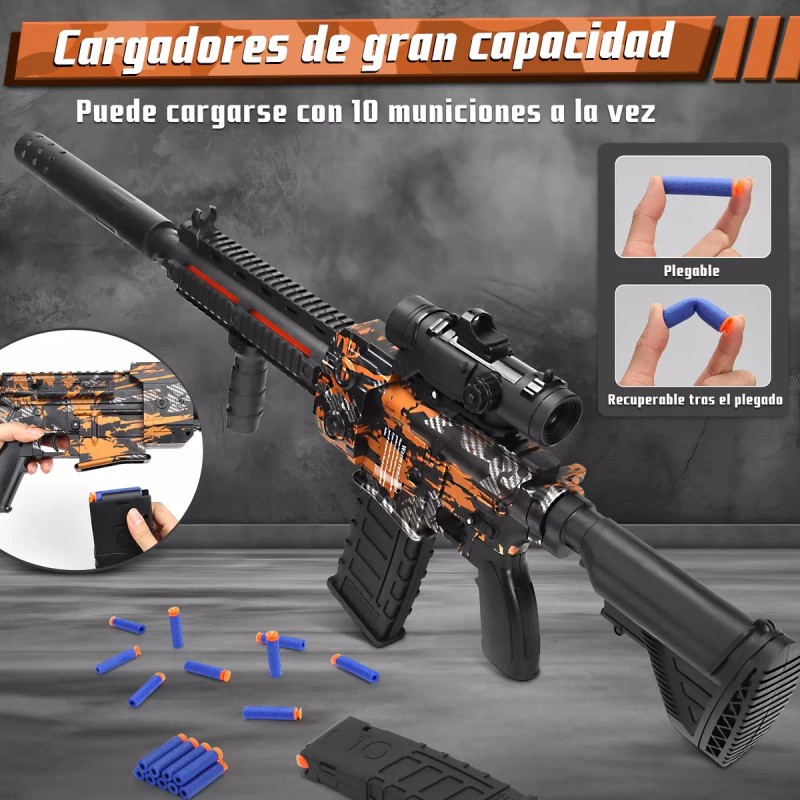 Este juego de pistola de juguete incluye 1 pistola bláster eléctrica, 80 balas de espuma, 1 Mirilla Plegable,1 batería recargable USB, 1 cable USB, 1 X Blanco de cartóns. Su hijo de 6 a 12 años seguramente se divertirá mucho con nuestra pistola de juguete automática.