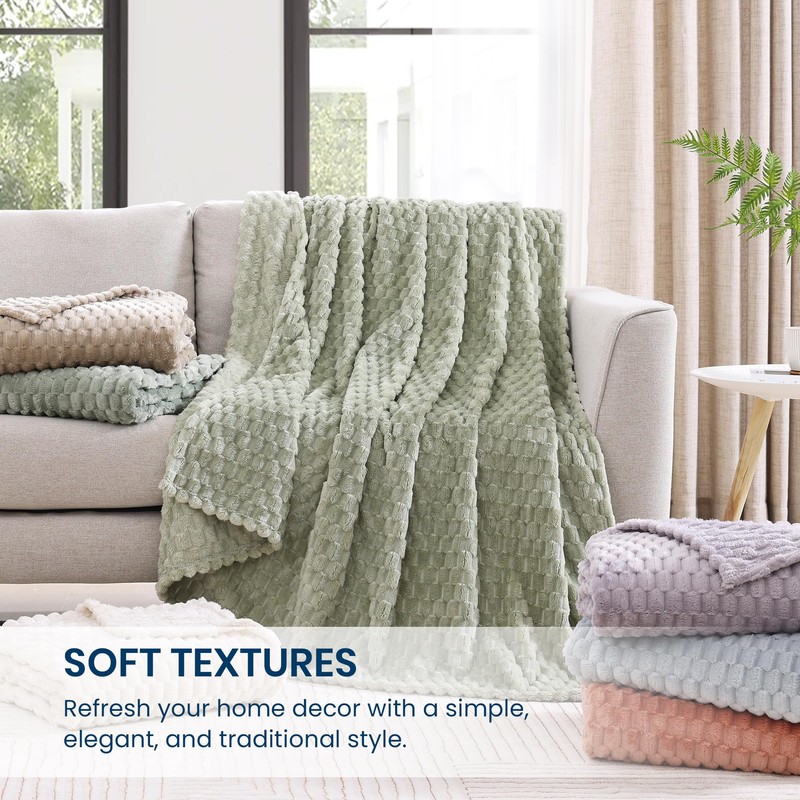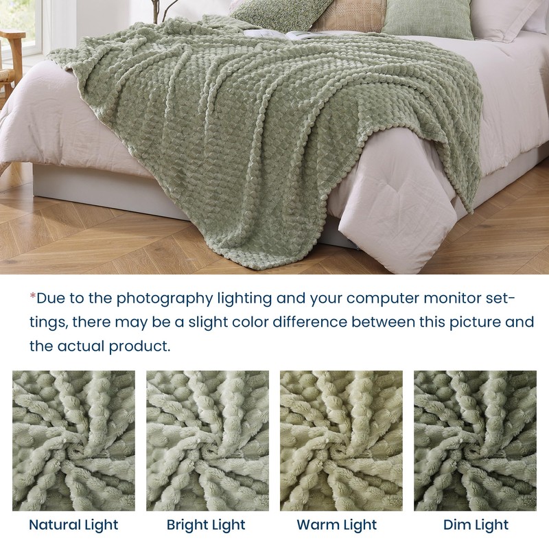 - Lightweight green throw blanket: this three-dimensional checkerboard pattern fuzzy blanket makes a great decoration! Show it off on a chair or sofa in your living room! And it’s absolutely perfect for the bedroom!