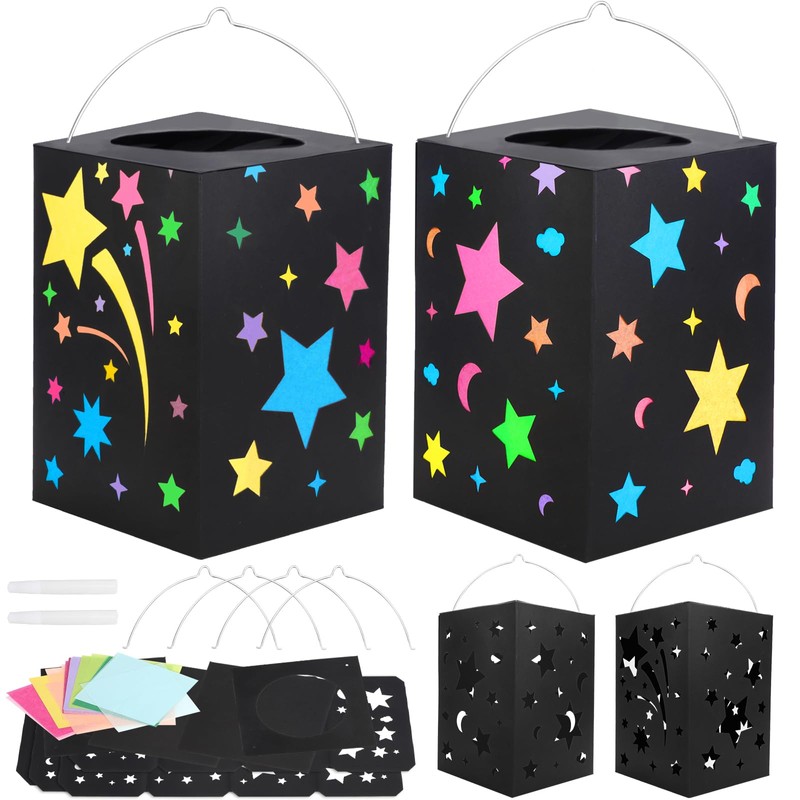 - Easy to Use: Our Halloween lantern craft kit is easy for kids to create, as they simply glue the colored cellophane pieces onto the pre-cut cards,and then assemble the lanterns(You can refer to the steps in the picture). Add an electric tealight and watch these star lantern come alive. The lantern is equipped with a metal carrying handle,so you can hang it everywhere