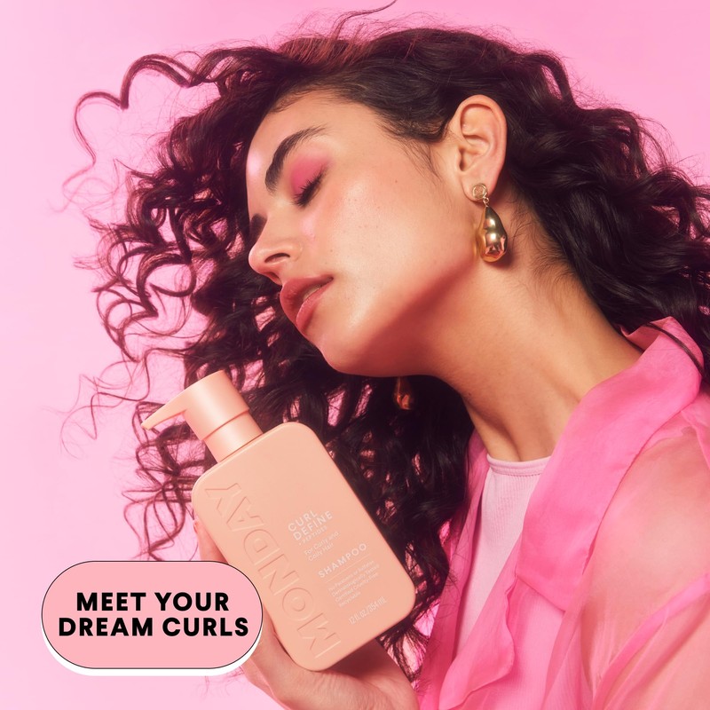 - CURL DEFINE SHAMPOO + CONDITIONER: MONDAY Haircares CURL DEFINE Shampoo is a supportive formula containing hydrating Peptides and gentle natural ingredients such as Coconut Oil to tame frizz and enhance shinewhile nourishing and strengthening hair. Curls are left bouncy and frizz-free.