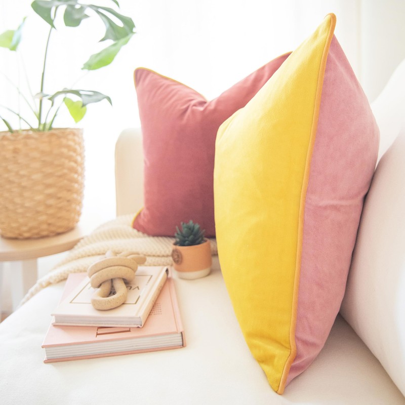 MONDAY MOOSE Decorative Throw Pillow Covers Cushion Cases, Set of 2 Soft Velvet Modern Double-Sided Designs, Mix and Match for Home Decor, Pillow Inserts Not Included (22x22 inch, Yellow/Pink)