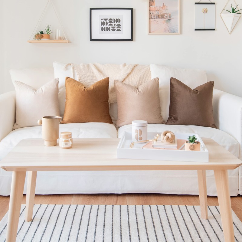 - SET OF 4: Includes 1 beige velvet pillow + 1 caramel velvet pillow + 1 brown velvet pillow + 1 light brown velvet pillow