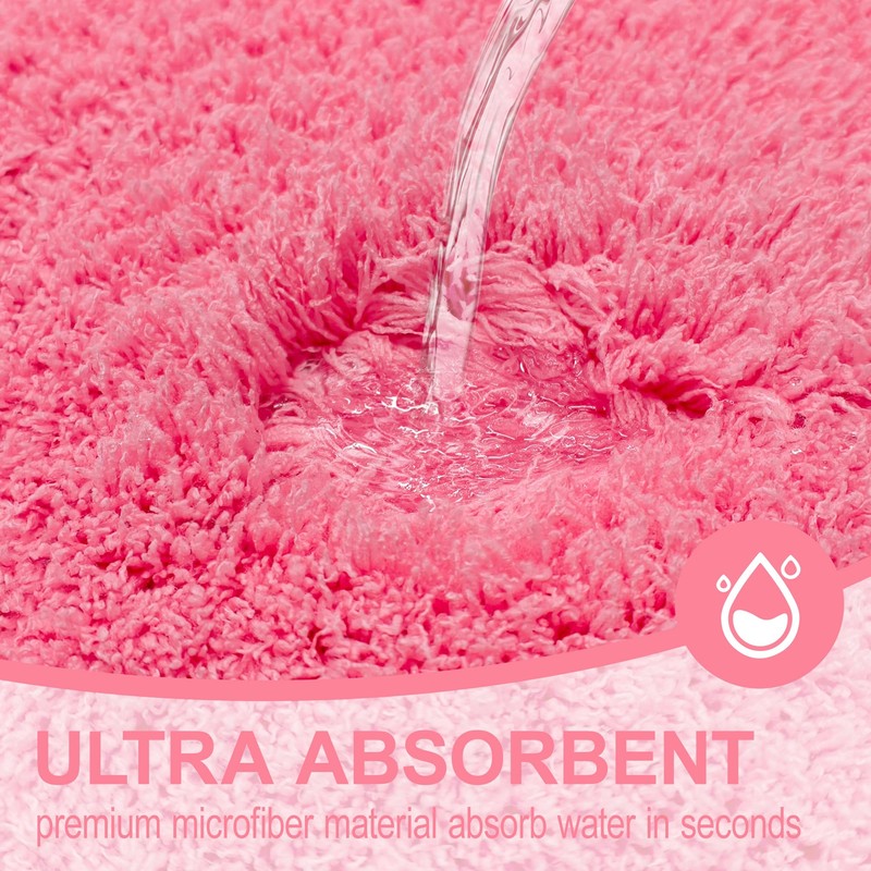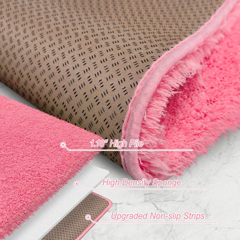 MondayRug Soft Shaggy Bathroom Rugs, Thick Microfiber Water Absorbent Bath Mat for Tub Non Slip, Machine Washable Quick Drying Bath Rugs for Bathroom Floor, Bathtub and Shower, 30"x20", Pink
