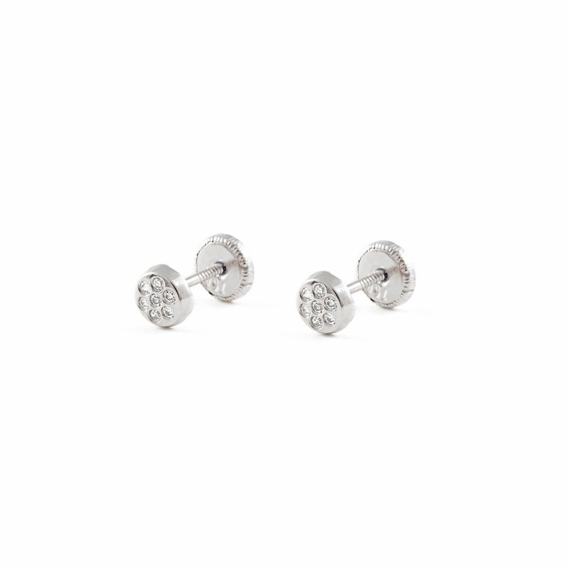 Mondepetit Children's Baby Round Zircon Earrings White Gold 18 Carat - Gift Box