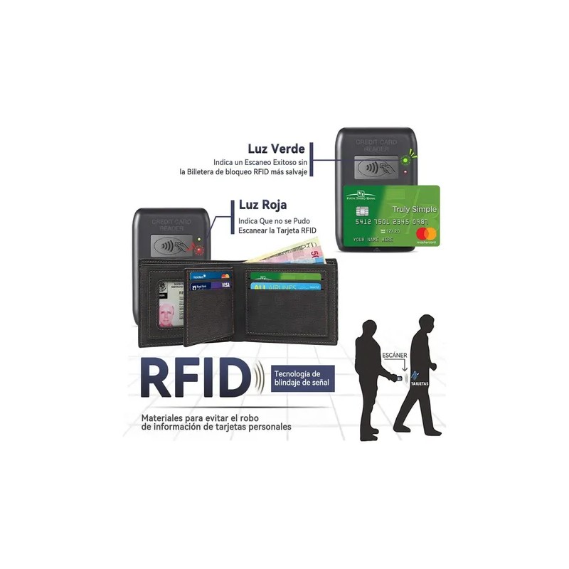 Capacidad: 7 ranuras para tarjetas, 2 ranuras para billetes grandes, 1 bolsa con cremallera oculta, 1 ranura para identificación de PVC transparente