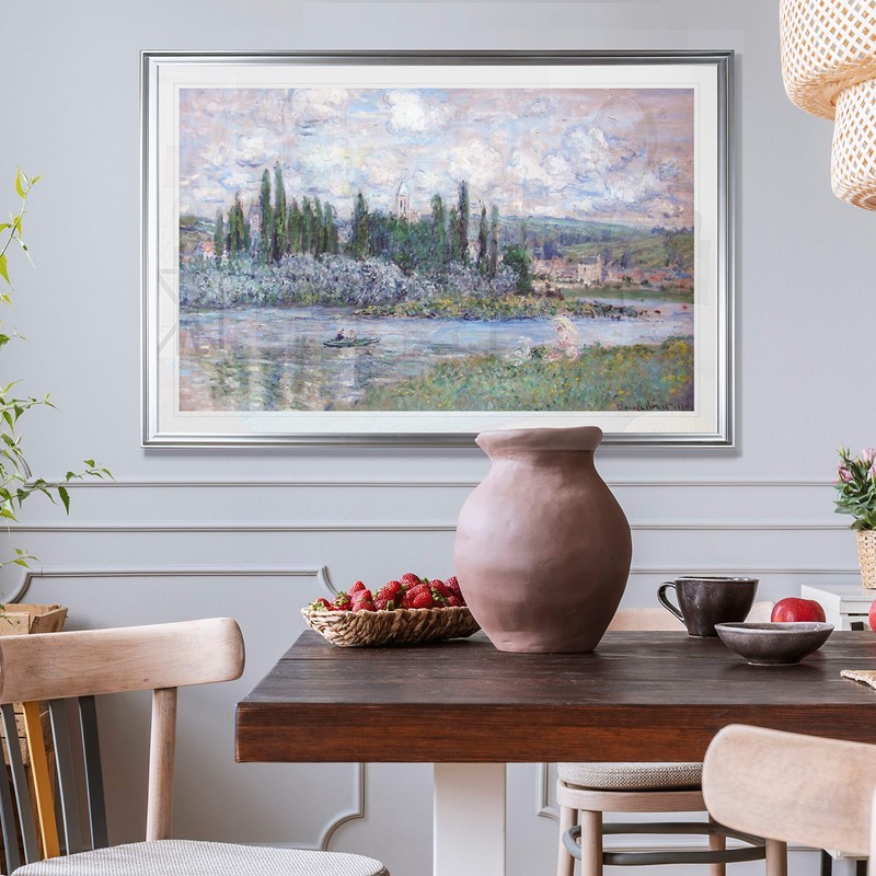 Monet Wall Art Collection View of Vetheuil, 1880 I By Claude Monet Fine Giclee Prints Wall Art In Premium Quality Framed Ready to Hang Silver Frame