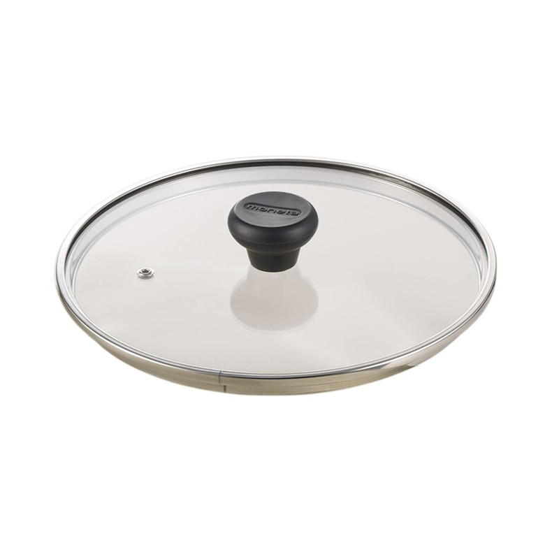 - Flat glass lid with stainless steel rim and knob made of athermic bakelite