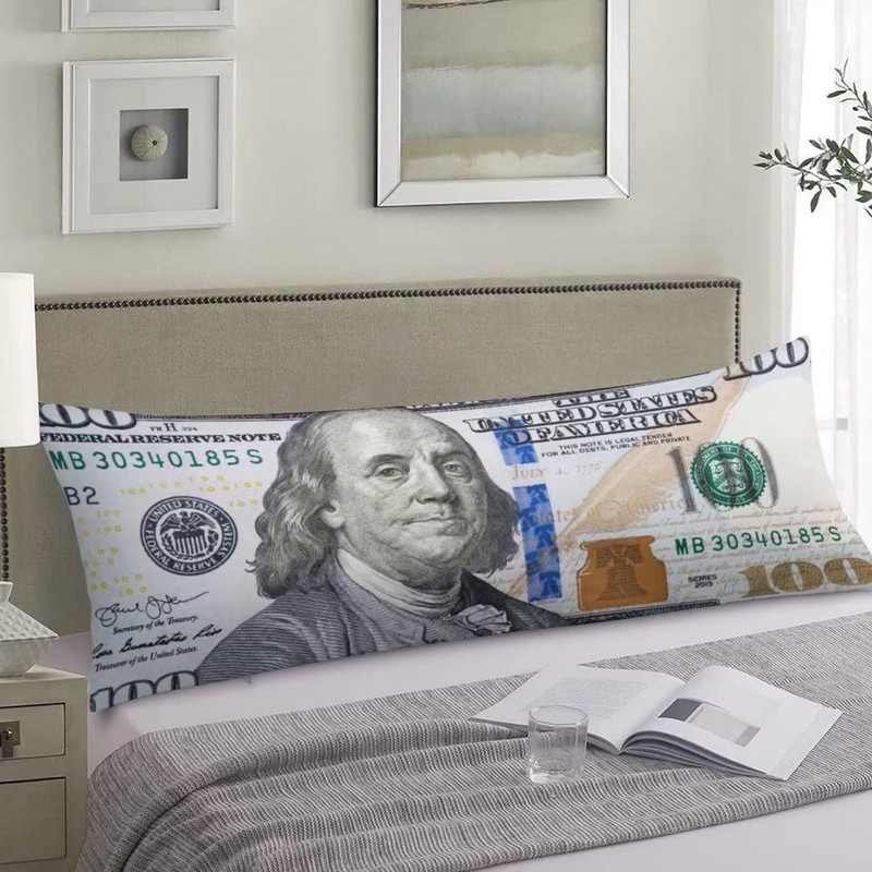 - Oversized Body Pillow Cover Size: Our rectangle 100 dollar bills total body pillow covers is 20" x 54" (51x137 cm), extra long cushioned pillow shame is suitable for standard body pillow. If you are a side-sleeper and you want a very firm pillow, you can choose to buy two narrow body pillow cover.Pillow insert or filler are NOT included.