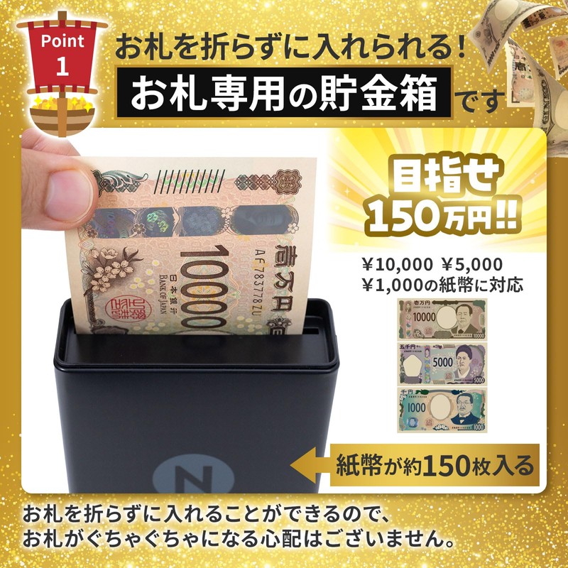 - It can hold 150 sheets and can be stored at 1,000 yen and 1.5 million yen bills