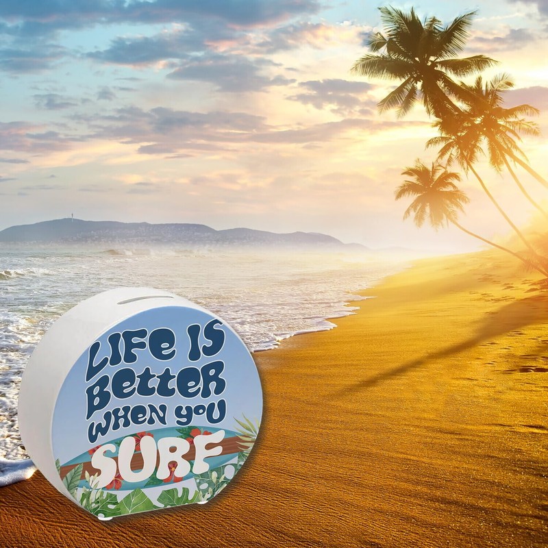 Money Box with Beautiful Surfboard Motif and Saying - Life is Better When You Surf Summer Money Box as a Gift for Surfers on a New Surfboard or on the Next