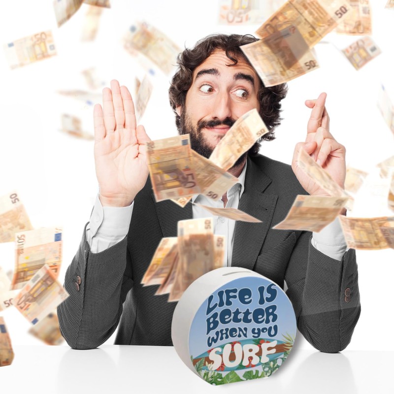 • Perfect for you if you want to save some money on your surf trip before your next trip to the sea. The money box is also suitable as a gift for someone who likes to surf.