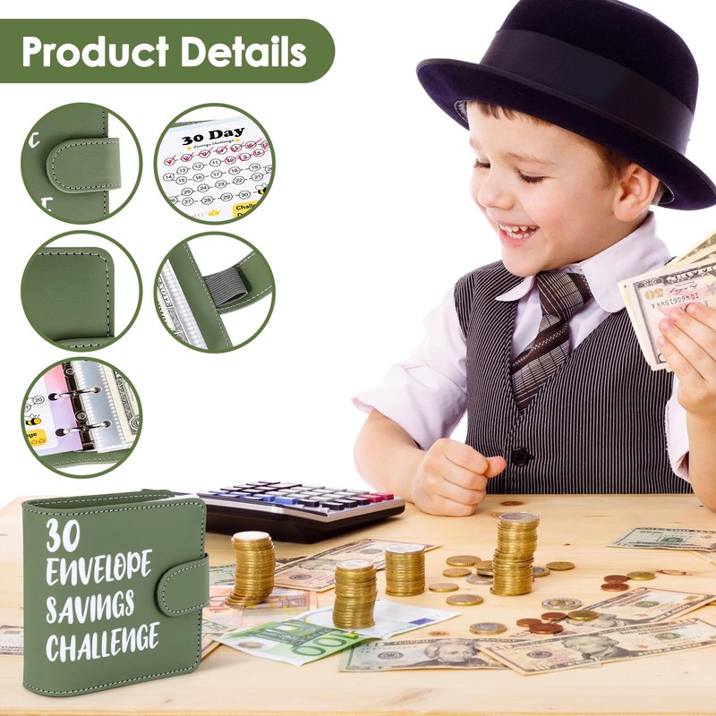 - Transparent Cards, Cash at a Glance: Equipped with 30 transparent savings envelopes, children can clearly see their saving progress and awakening the motivation to save money. As children see more and more money in the envelope, they value every penny more and learn to meaningfully divide their pocket money.