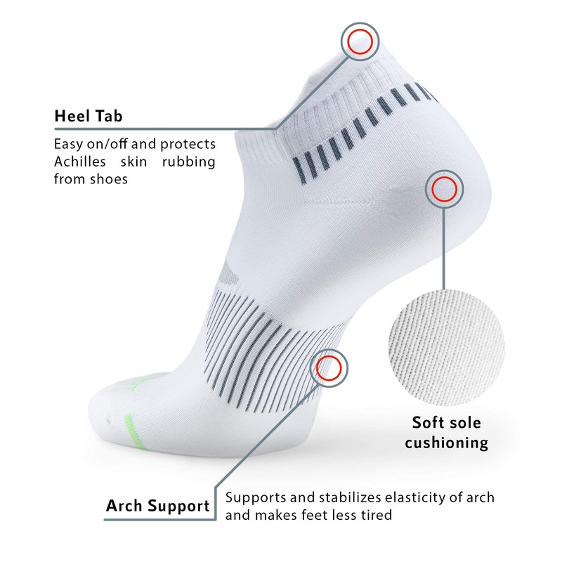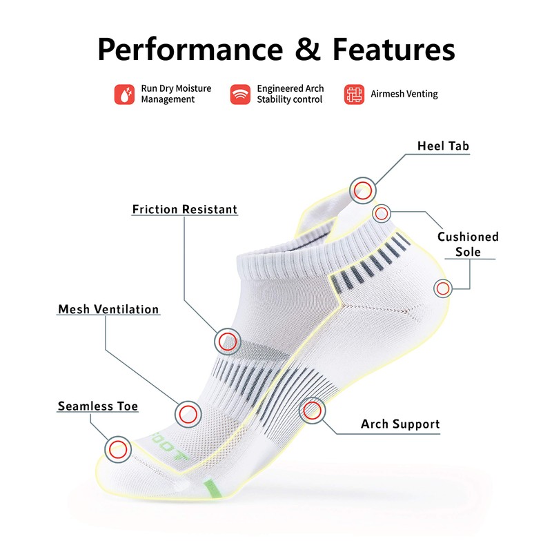 - Stay-Put Heel Tab – Heel tab design protects the achilles from rubbing and ensures the socks stay in place without slipping inside shoes.