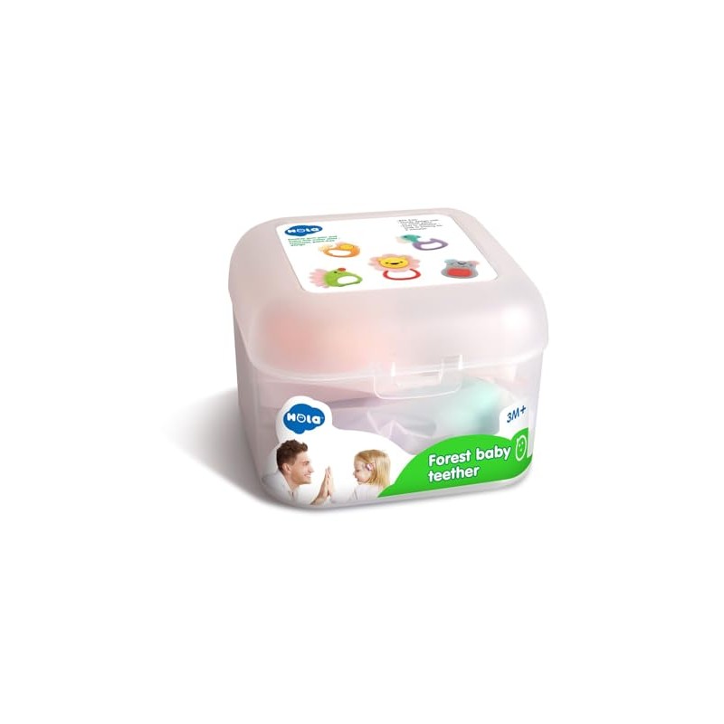 Das Beißring-Set Wald 5-teilig E318A von Moni ist eine tolle Hilfe beim Zahnen. Das Beißspielzeug weist verschiedene Texturen auf, wodurch Ihr kleiner Schatz ganz viel entdecken kann. Um das Spielzeug zu desinfizieren, wird es 3 Minuten in kochendes Wasser gelegt. Nach dem Abkühlen kann der Spielspaß weitergehen. Durch seine Größe kann es von Babyhändchen gut festgehalten werden. Somit trainiert es gleichzeitig noch die Motorik sowie die Hand-Augen-Koordination.