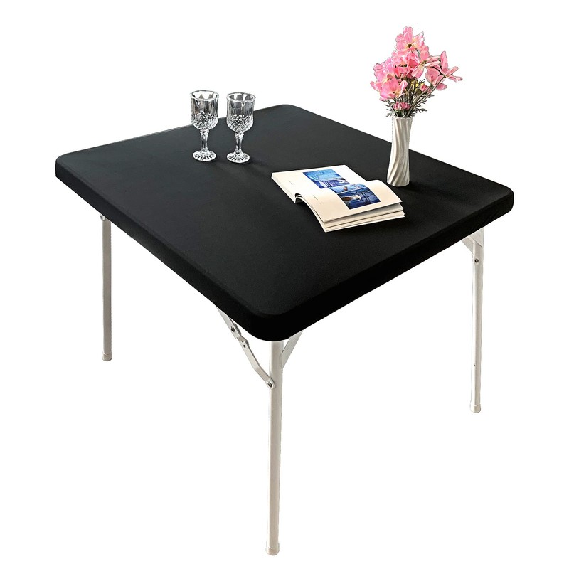 Monibana Cocktail Fitted Spandex Stretch Square Table Covers Caps Elastic Square Tablecloth Black Table Topper 48x48 Inch