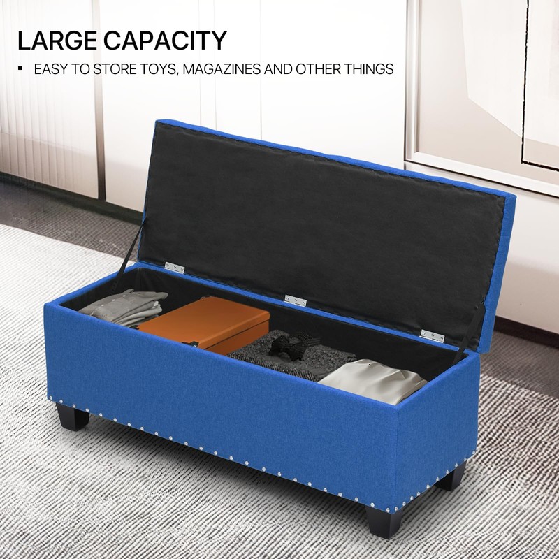 MoNiBloom 42 Inch Long Storage Ottoman Bench, Contemporary Grey Linen Foot Stool Upholstered Foam Padded Rectangular Fabric Tufted Bench Footrest for Living Room Bedroom Entryway with 660 Lbs Capacity