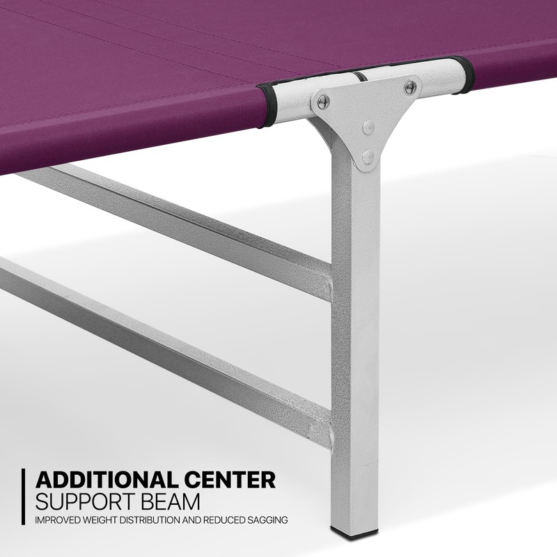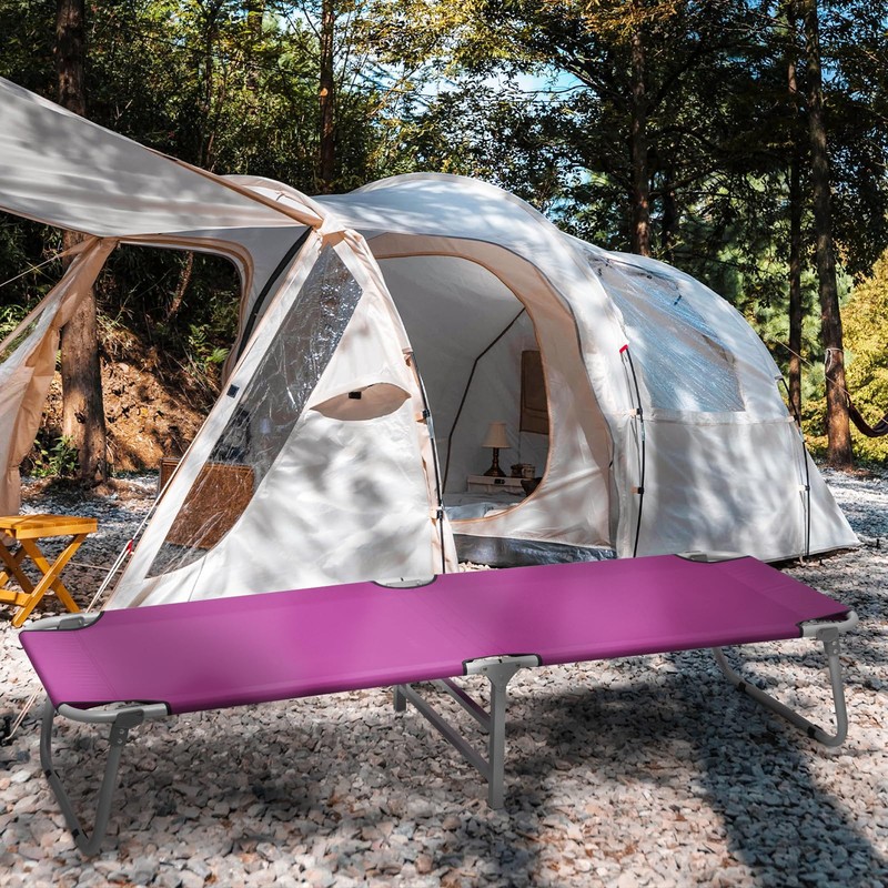 MoNiBloom Camping Cot for Adults Easy Setup Folding Cot Bed with Storage Bag for Outdoor Camping, Lounging and Elevated Napping, Support 300 lbs, Purple