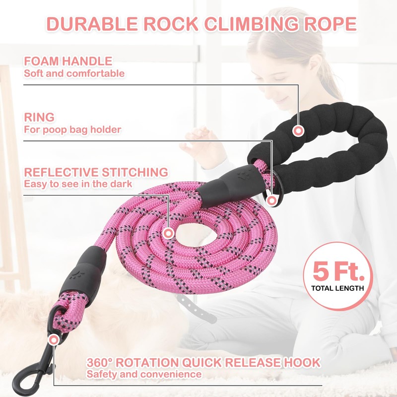 • Robust Leash Design - Crafted from heavy-duty climbing rope with a padded handle, this leash offers a comfortable grip and features a reflective thread for visibility, suitable for medium to large dogs.