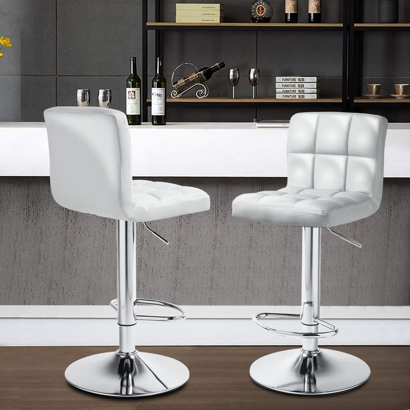 MoNiBloom Silver Barstool Set of 2, PU Leather Modern Seat Height Adjustable ...
