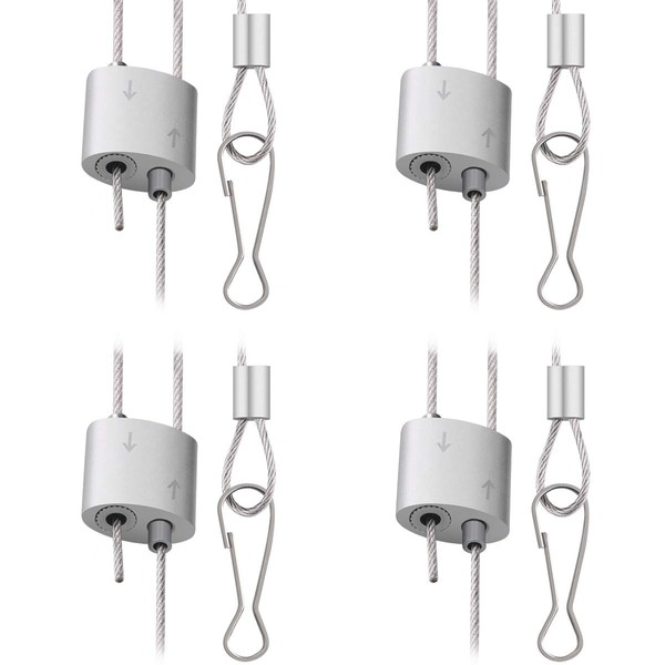 Monios-L Rope Hanger for Grow Light Fixture 6.56FT Adjustable Stainless Steel Wire Loose-Proof Design 2 Pairs