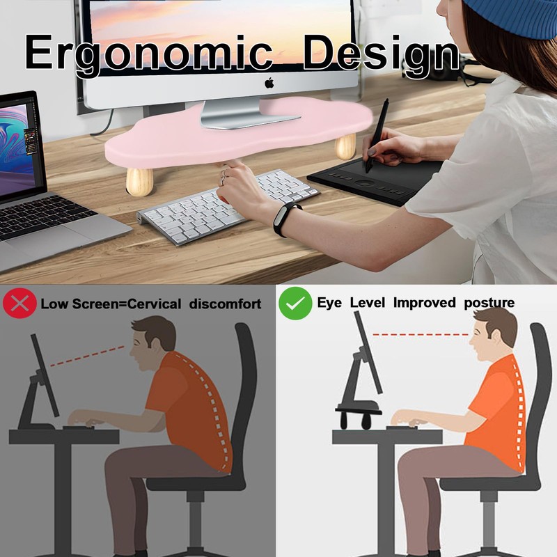 Monitor Stand Riser, Desktop Computer Stand for Desk Small Monitor Stand TV/Screen/PC/Laptop Riser Computer Stand Desktop Shelf, Desk Organizers and Accessories, Pink Desk Organizer(Pink, Cloud)
