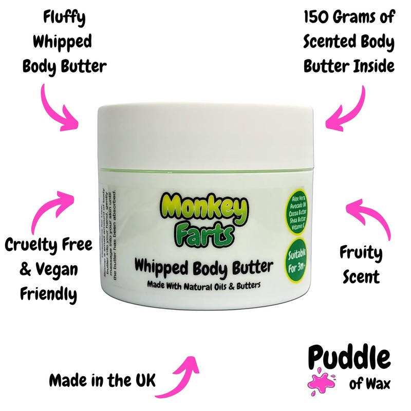 Monkey Farts - 150g Whipped Body Butter - Made with Natural Oils and Butters - Vegan Friendly - Puddle of Wax - Made in the UK