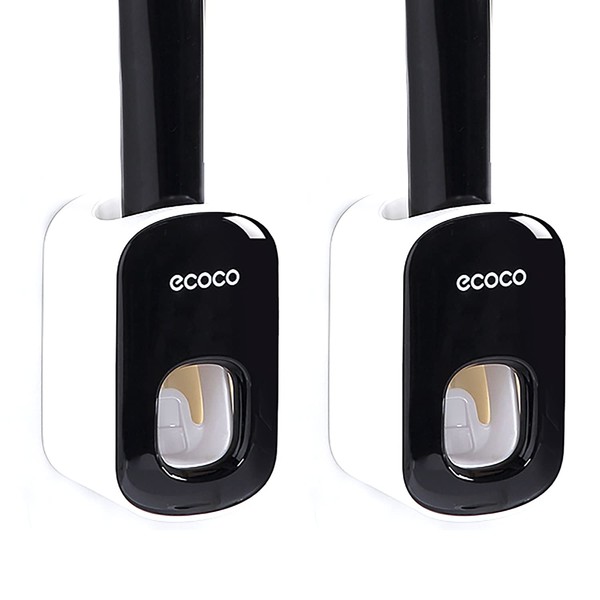 Monkey Home Automatic Toothpaste Dispenser Set with Wall Mount for Bathroom, Novelty and Simple Toothpaste Squeezer for Kids, Shower, Bathroom, Black, 2 Pieces