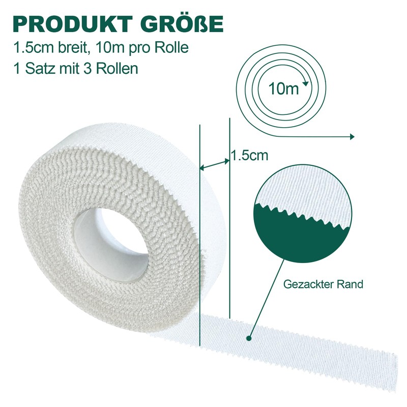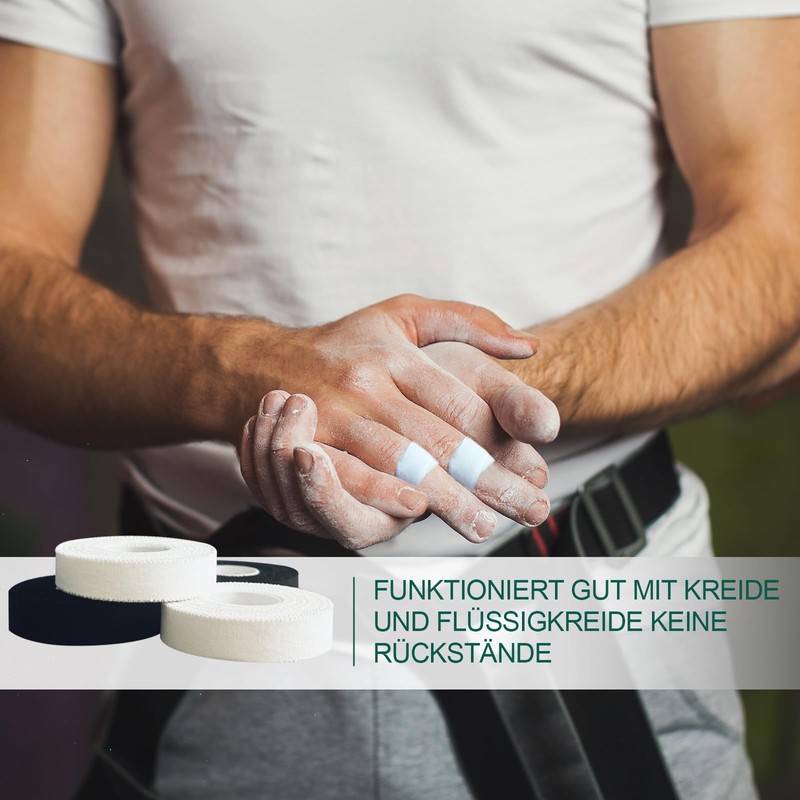 - Perfect size & quantity - Each pack contains 3 rolls of finger tape. Each roll is 1.5 cm wide - the optimal width to securely fix the tape between the finger joints and support the tendons. With a length of 10 metres per roll, you have enough material for a variety of applications and long climbing adventures.