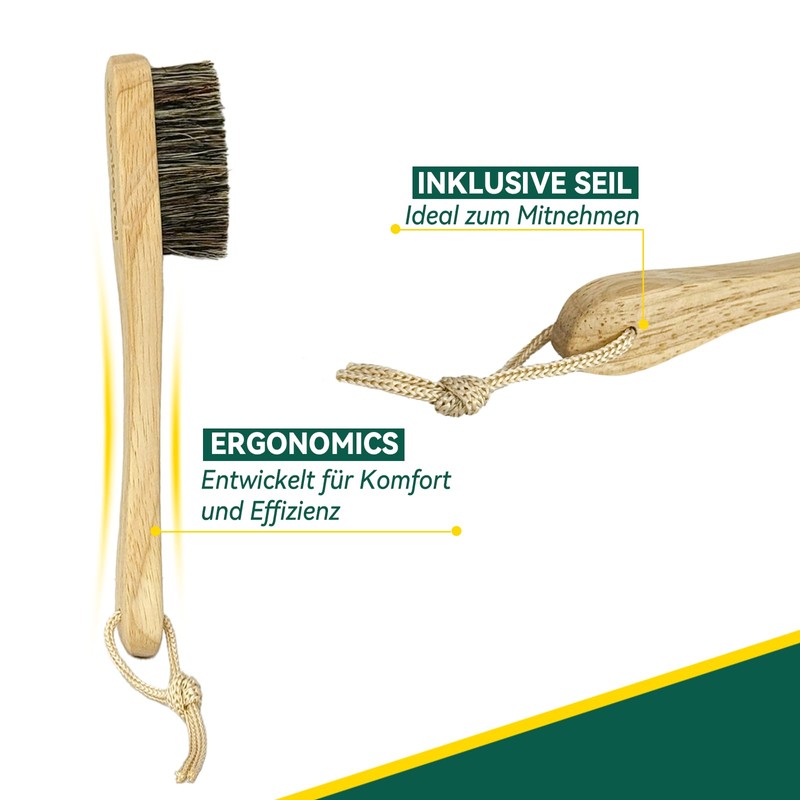 - SUSTAINABLE AND ECO FRIENDLY MonkeyTail Climbing Brush has a beech wood handle that ensures durability and is an environmentally friendly alternative to plastic brushes. The bristles are made of hog bristles that guarantee a long service life and excellent cleaning performance.