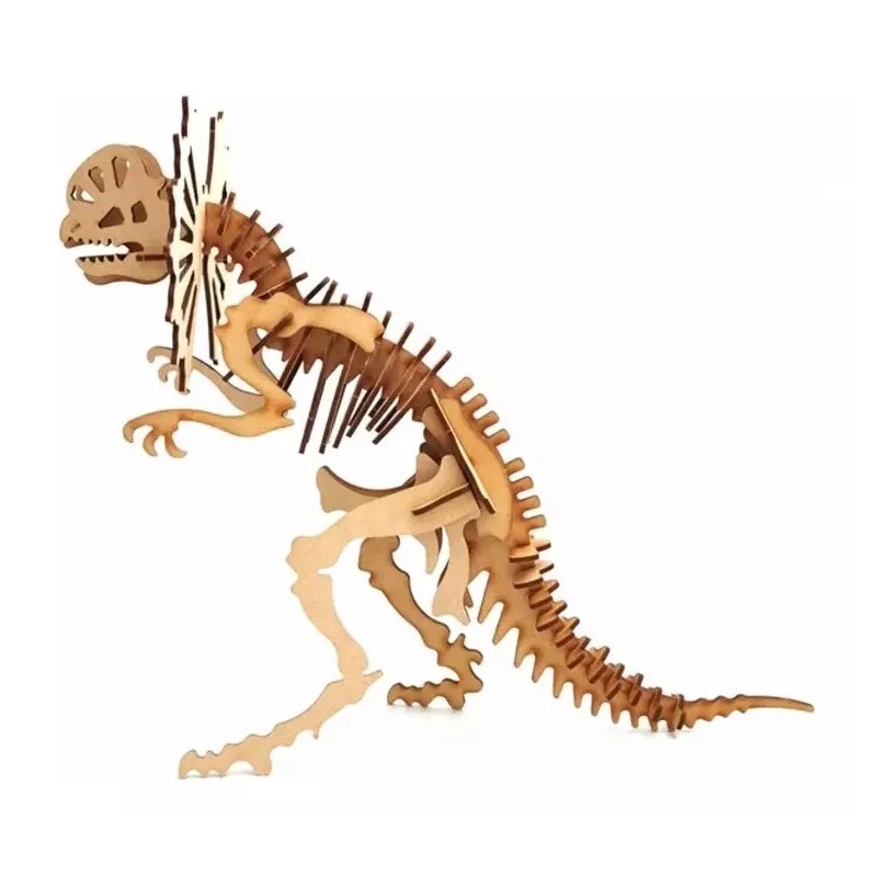 Kit didáctico para armar un Dilophosaurus de MDF, aplicando el aprendizaje STEAM.