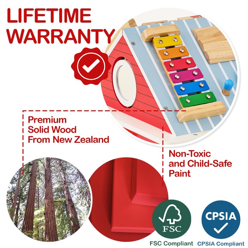 - Safe & Sturdy Natural Wood – Crafted from solid New Zealand pine with smooth edges and water-based, non-toxic paint; fully CPC-certified for worry-free daily play.