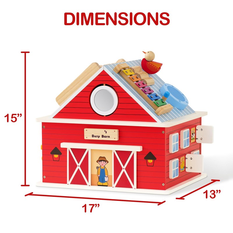 - 12-in-1 Open-Ended Activities – Spinning gears, sliding tracks, peek-a-boo barn doors, animal tiles, flip blocks and more keep little hands busy while building fine-motor and problem-solving skills.