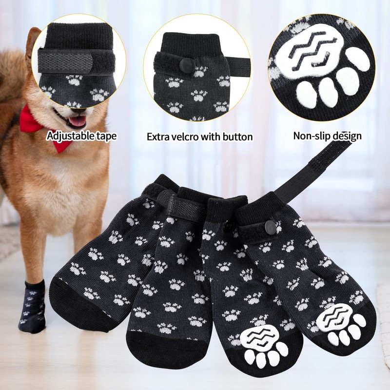 - Amplio uso: los calcetines para mascotas antideslizantes no solo se pueden aplicar en interiores para garantizar un movimiento seguro de mascotas en lugares lisos, sino que también puede proteger efectivamente el piso o el sofá y otros muebles de los clavos de los perros; Al mismo tiempo, las calcetines antideslizantes de PET también se pueden aplicar al aire libre para proteger la limpieza de los pies de mascotas