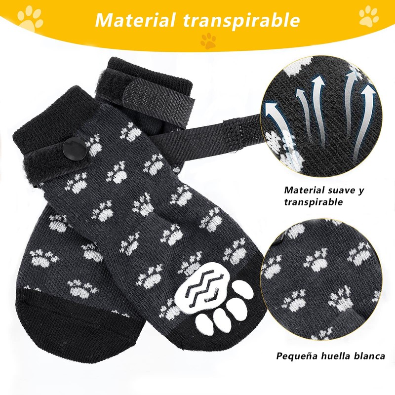 Monlida Calcetines Antideslizantes para Perros con Protectores de Patas,Calcetines Antideslizantes de Doble Cara para Perros con Correas Ajustables,Control de tracción para Interiores (L, A)