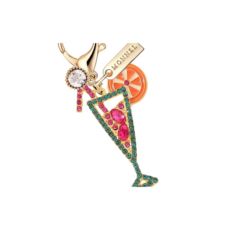 MONNEL MC418 Little Crystal Lady Cocktail Lobster Clasp Charm for Women with Velvet Bag (Pink Green,1 Piece)